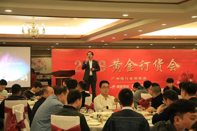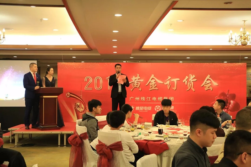 陽春三月,萬物復蘇,在這春暖花開的好時節,廣州珠江電纜集團2019年度經銷商交流暨訂貨酬賓大會于3月23日在美麗的從化碧水灣度假村如期舉行,參加本次會議的有來自全國部分經銷商代表200余人,集團董事長侯少綿攜集團高管親臨會議現場。本次現場訂貨會共簽訂銷售合同近5000萬元,回贈客戶50克千足金金幣60枚。