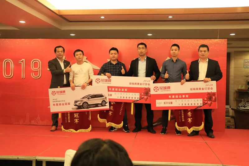 現場訂貨會完畢,舉行了答謝晚宴。集團董事長侯少綿致辭感謝各位經銷商多年以來的支持和幫助,愿與各位經銷商風雨兼程,攜手并進,打造一個廠商合作共贏的新模式。隨后,對2018年度集團各公司的銷售前三名進行了嘉獎并為2019年的合作經銷商頒發了授權證書。最后,根據現場訂貨會的簽約情況回贈簽約商金幣60余枚,晚宴在熱烈歡快的抽獎環節中圓滿結束。