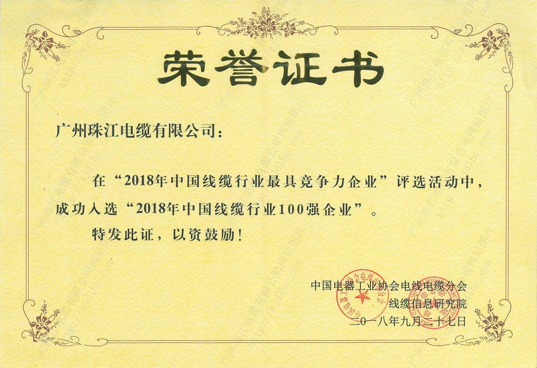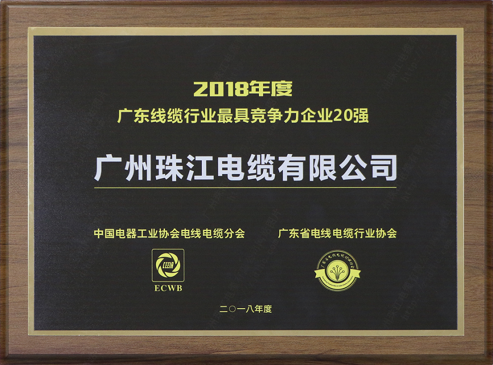 • Top 20 Most Competitive Enterprises in Guangdong Cable Industry